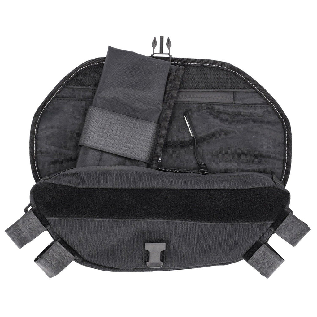 - The main compartment is closed by a waterproof and dirt-resistant zip, inside there is a removable tool roll