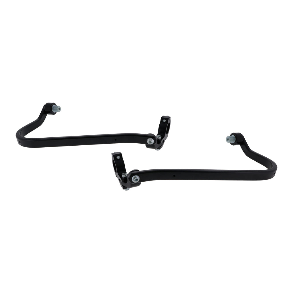 An aluminium handguard kit bolts up to the end of your bars and onto a second mount that clamps directly on your bars, inward, in front of your controls. This two-point approach forms a cage around your hands and also protects your handlebar controls to prevent or minimize damage in a crash scenario. Bike-specific hardware is designed to clear throttle cables, hydraulic lines and other interferences found within individual bike models.