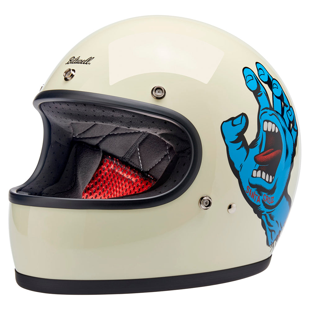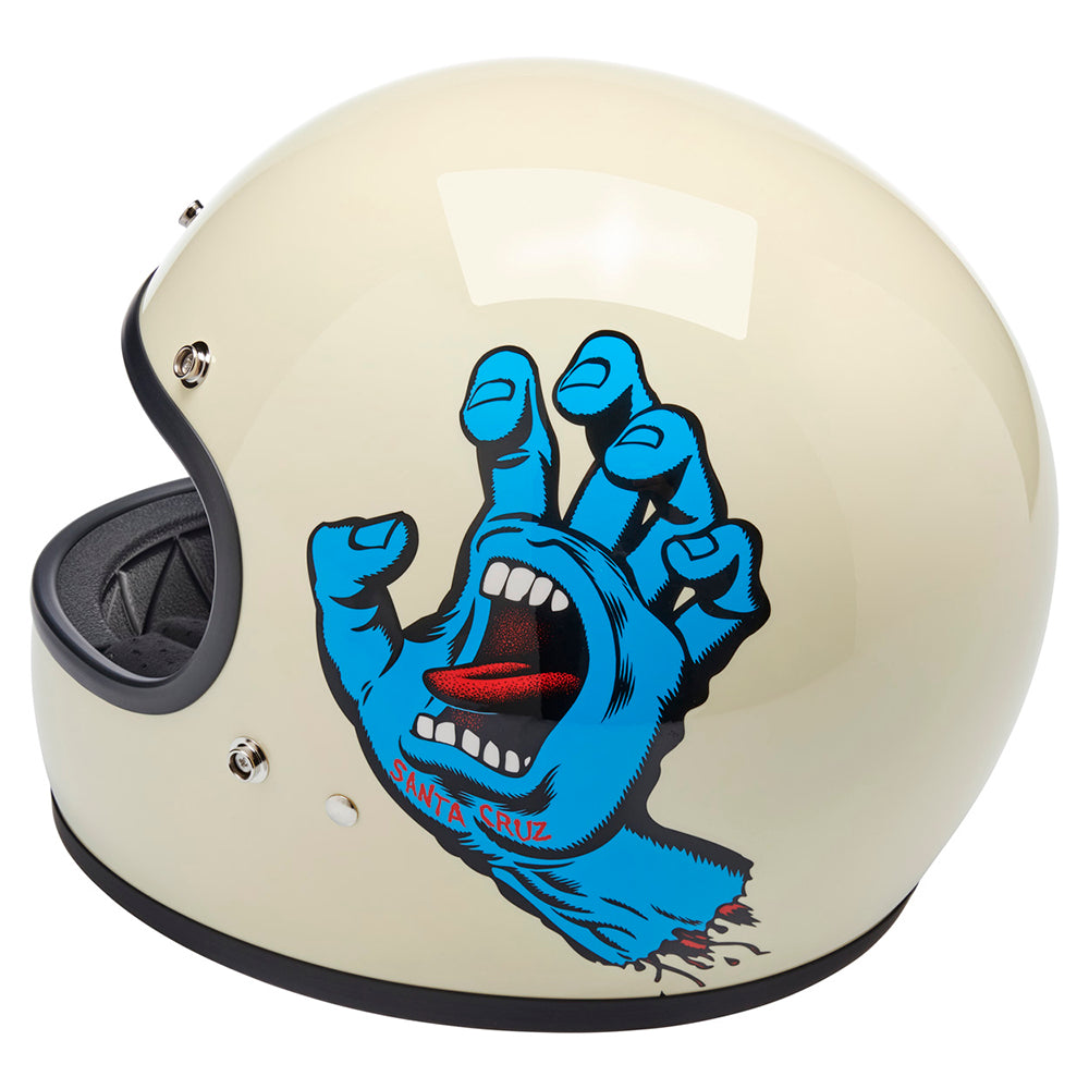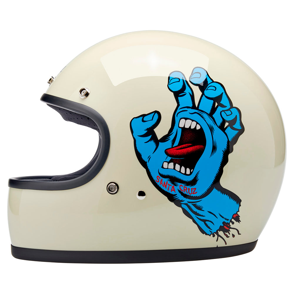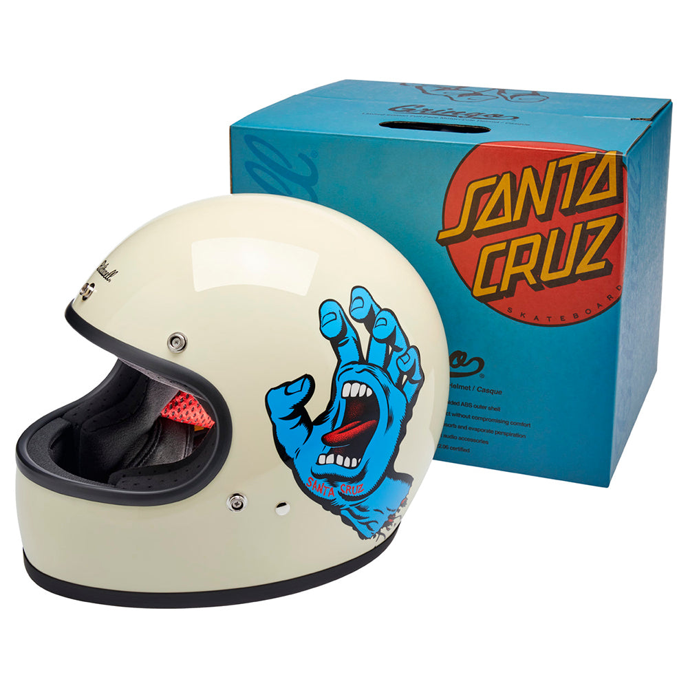 Santa Cruz Skateboards is one of those brands we have looked up to since Biltwell’s founding in 2006. Their mission statement sums it up perfectly “To inspire fans of skateboarding and art by drawing from our past, in the present, for the future…” Created in 1985 by Jim Phillips, the Screaming Hand is one of the most recognizable skate logos of all time and we thought it was the perfect fit for a collaboration on this limited edition Gringo helmet.