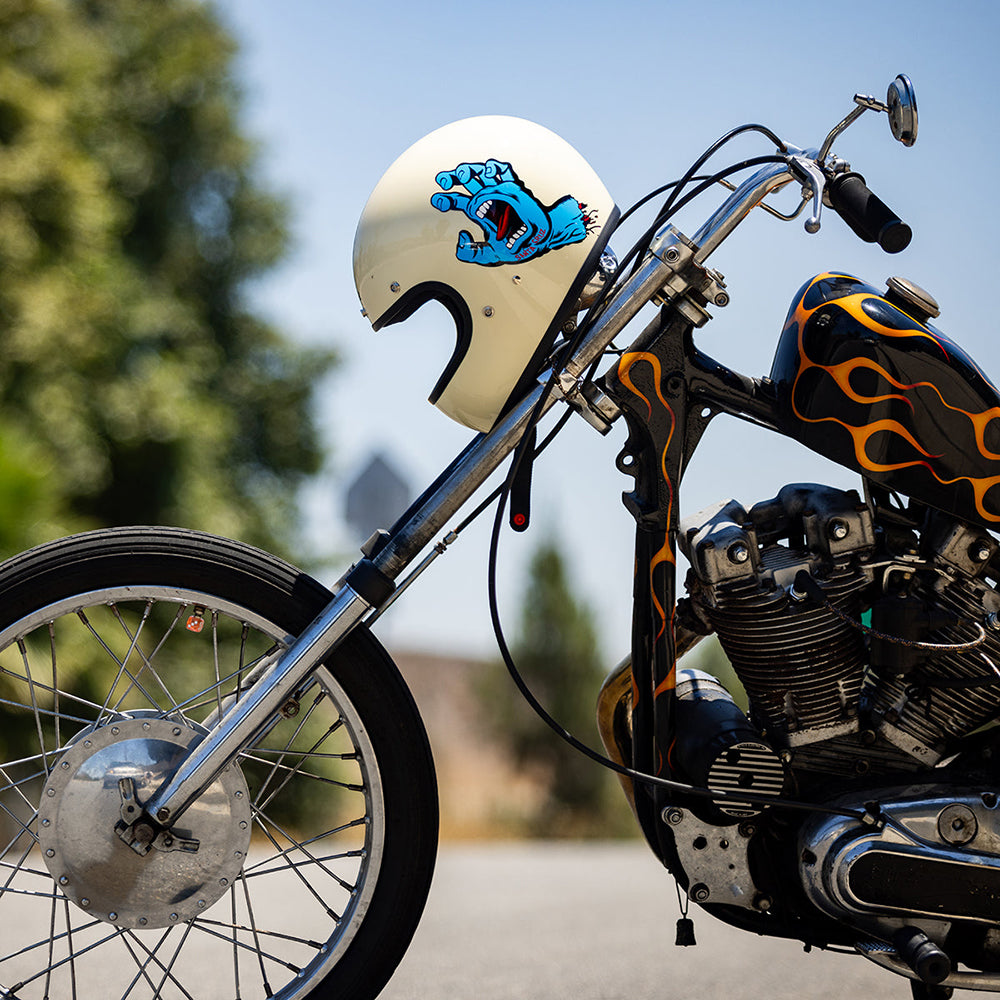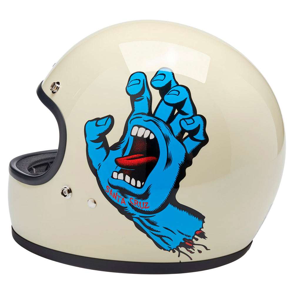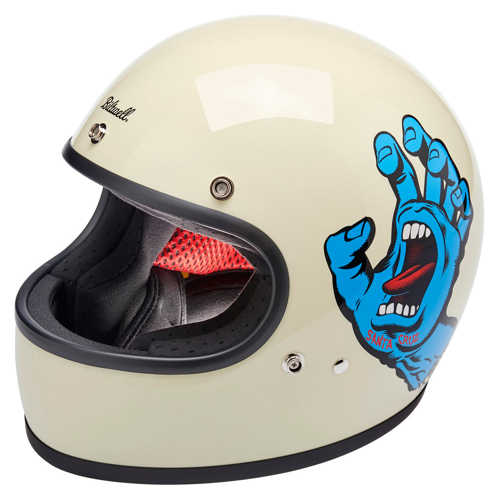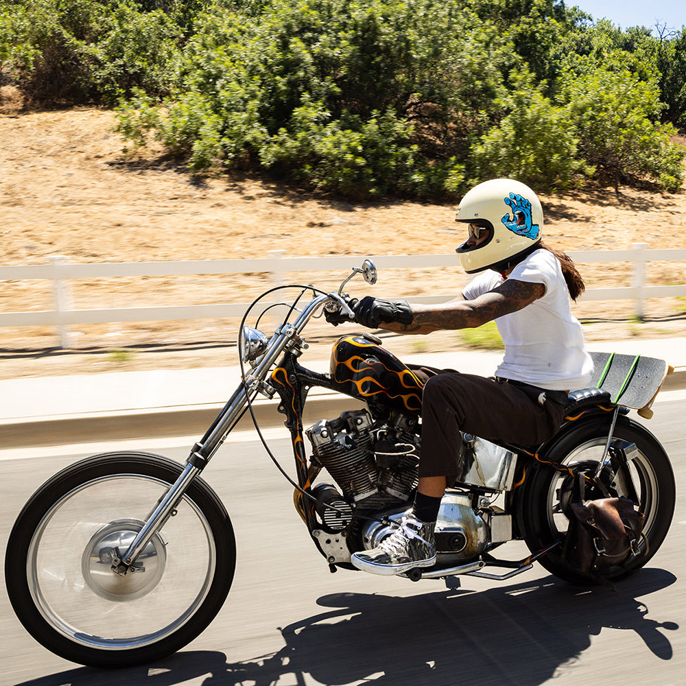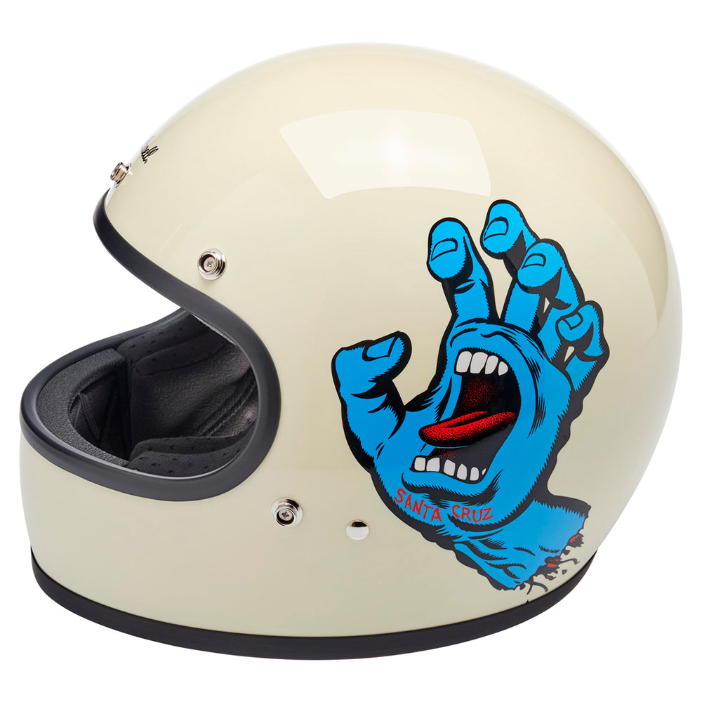 Santa Cruz Skateboards is one of those brands we have looked up to since Biltwell’s founding in 2006. Their mission statement sums it up perfectly “To inspire fans of skateboarding and art by drawing from our past, in the present, for the future…” Created in 1985 by Jim Phillips, the Screaming Hand is one of the most recognizable skate logos of all time and we thought it was the perfect fit for a collaboration on this limited edition Gringo helmet.