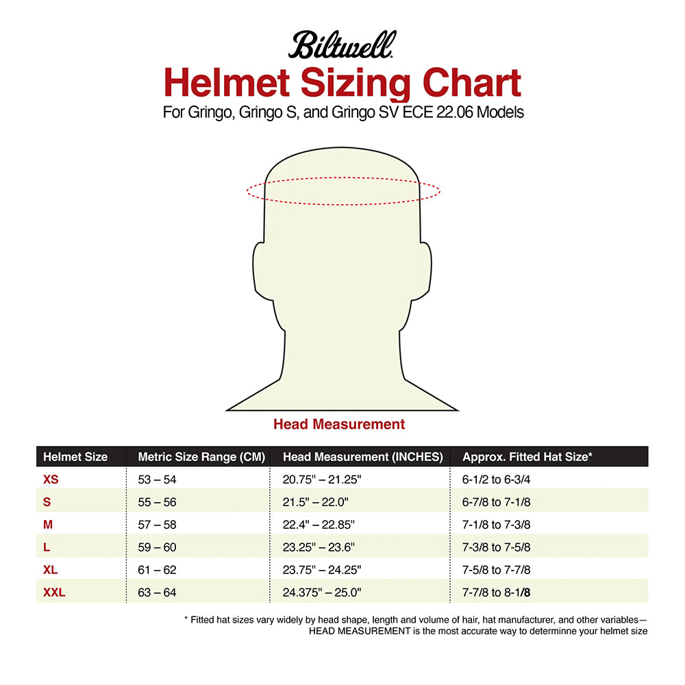 Please follow the instructions in our sizing chart before ordering a new helmet in the same size as your current model. To meet Europe's new, more robust standards for impact attenuation and rider safety, ECE R22.06-certified helmets may fit you more snugly than similar US DOT-compliant models. NOTE: We offer accessory cheek pads so you can fine-tune the comfort of your helmet against your cheeks and face for a perfect fit.