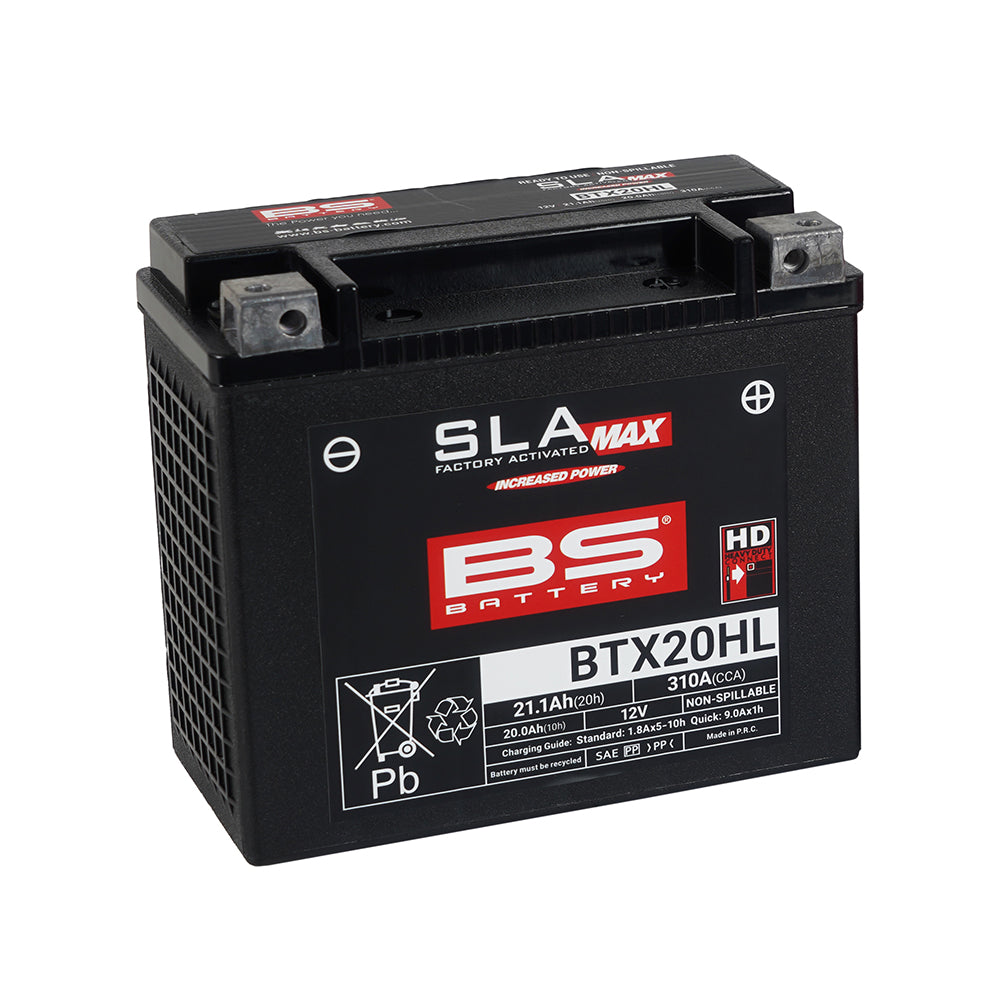 BTX20HL battery is a part of our SLA Max range. Designed for the most extreme conditions, this 12V 21.1Ah battery offers maximal performance to big engines motorcycles equipped with electronic equipments (GPS, Alarm, audio, flashlights...). With specific terminals and reinforced battery case, this battery offers maximum vibration resistance and easy mounting on Harley Davidson motorcycles.