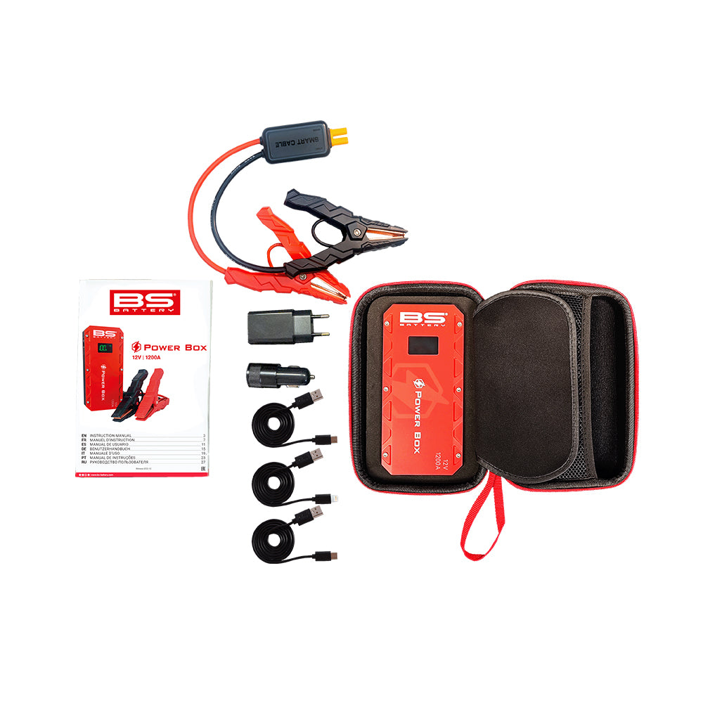 Comes with a storage case, smart jump lead, lightning cable, Micro USB cable, USB C cable, 12V car charger and 12V home charger.