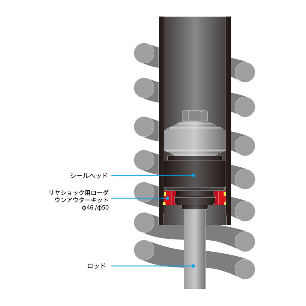 Lower your rear suspension without disassembling the shock unit. By pressing down the seal head from outside the damper, this kit installs easily and lowers your suspension by 30mm while maintaining full functionality.