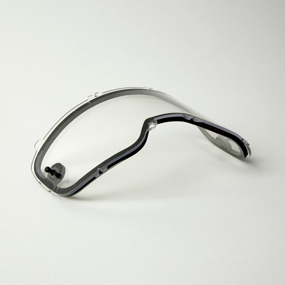 - Polycarbonate Pre Curved Dual Layer lens offers excellent impact resistance