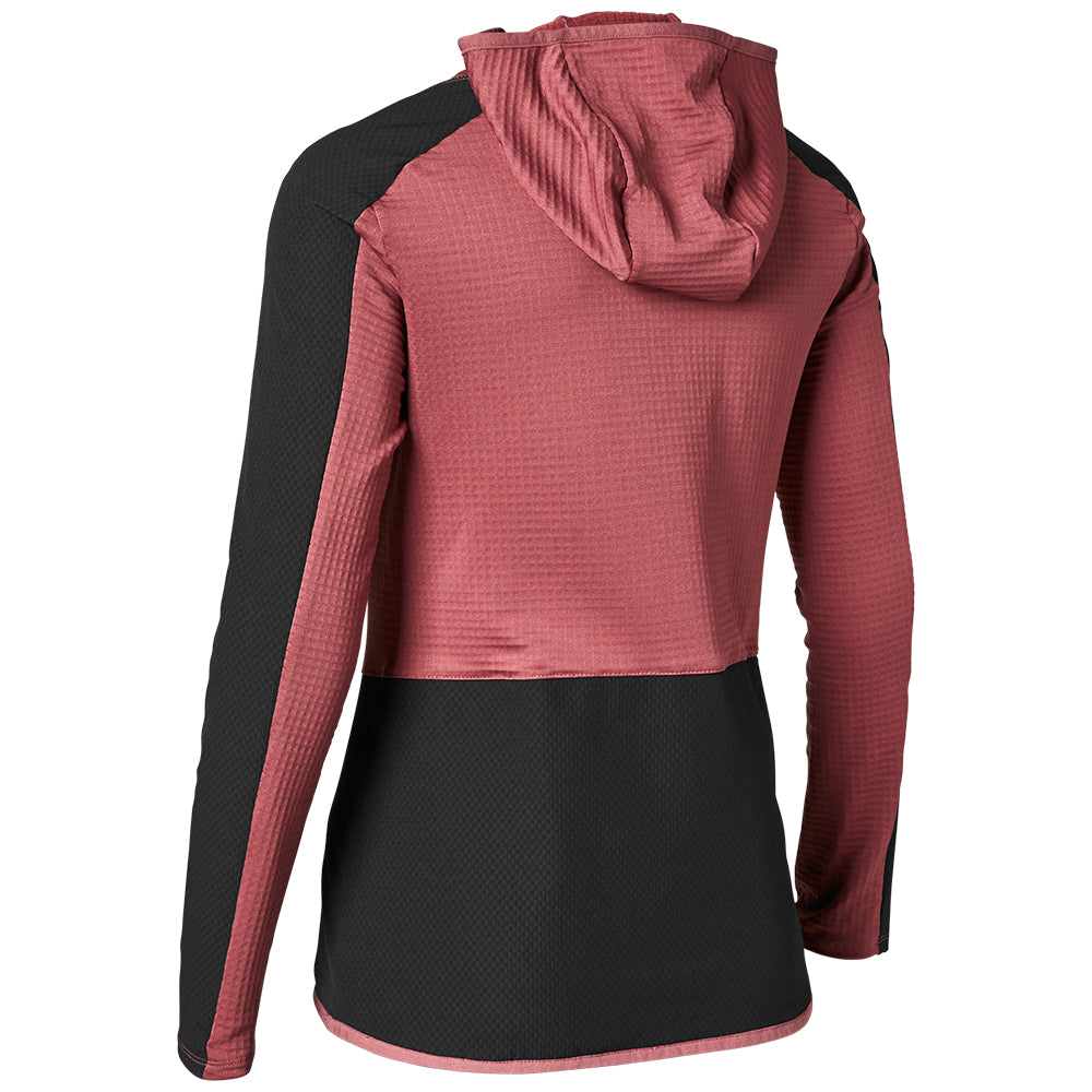 Insulated women’s mountain bike hoodie.The Women's Defend Thermo Hoodie has more than warmth on its mind, with lightweight, insulated durability that'll wick away sweat while keeping you snug and protecting you from the cold. This hoodie goes the extra mile with abrasion-resistant, wind-blocking fabric that will add to the toasty times as you hit that chilly downhill. Best of all, the form-fitting hood fits easily under your helmet to provide that next-level defense against the cold as you pedal through the rough stuff. A convenient and secure stash pocket at the hip means you can rip those trails with your stuff held in place, no matter how rowdy you get.
