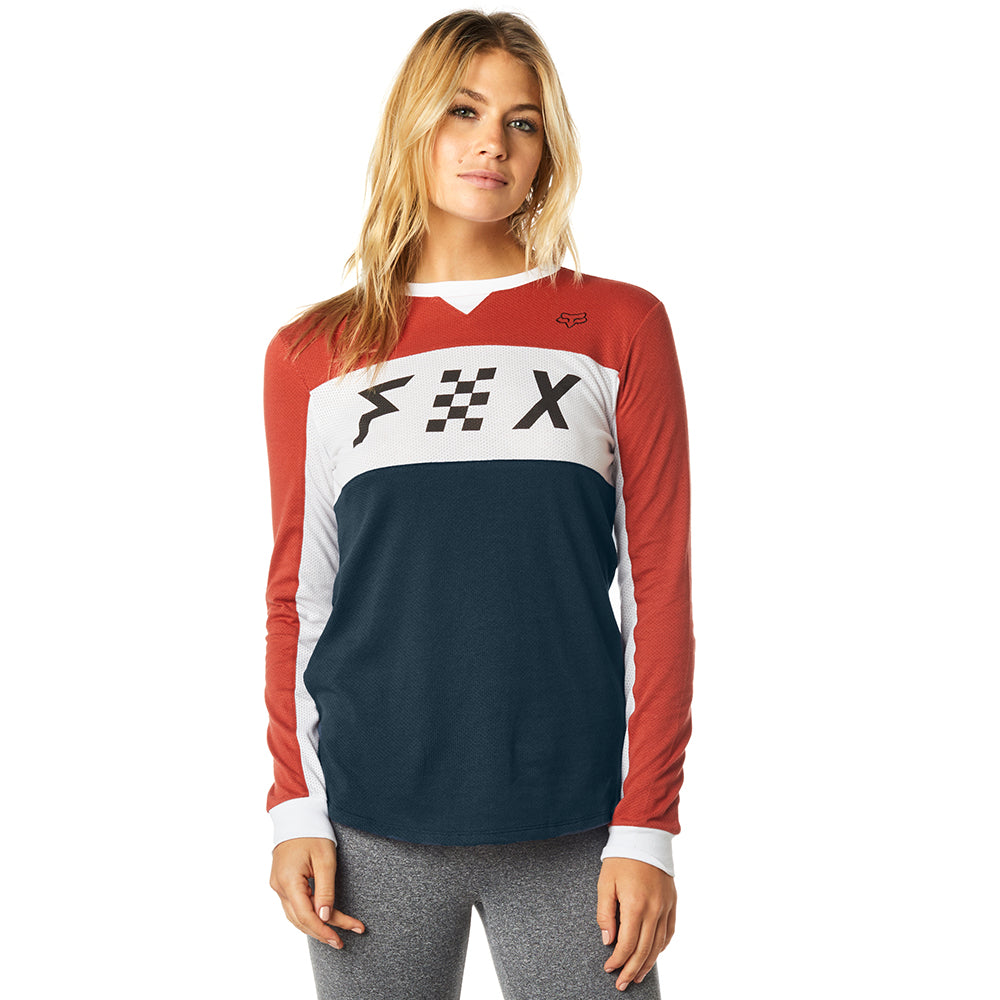 Stock Item: FOX WOMENS SCRAMBLER LS TOP [DARK RED] XS