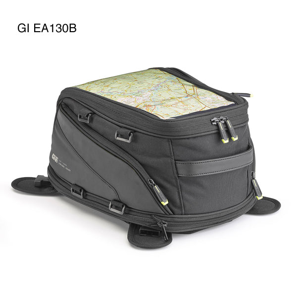 Universal expandable tank bag, 26 litre. Can attach to the bike via magnets or quick-release straps, also can be converted to a shoulder bag or rucksack.