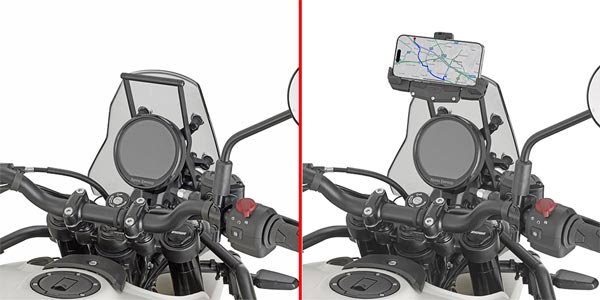 This handy little bracket provides the support needed to mount a sat-nav, smartphone holder or any gadget in the best position, i.e. above the control panel, avoiding the need to look down at a device whilst riding. Mounting behind the bike’s screen, it is compatible with both the original screen and the GIVI range of screens. Fits specific models of adventure bikes – search My Motorcycle on Givi's website to check availability on your bike.