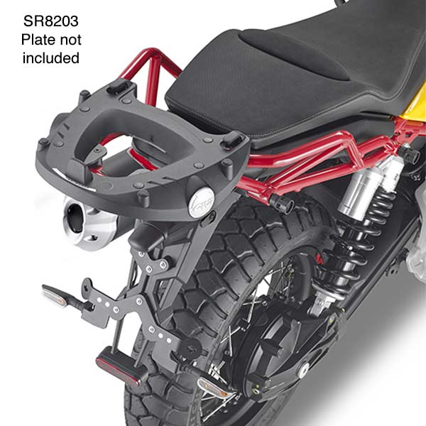 To fit a Givi Monokey touring top box, you will need either the SRA8203 kit (includes aluminium plate) or the SR8203 kit plus a plate (M5, M7, M8A, M8B, M9A or M9B sold separately). Click here to see top box options.
