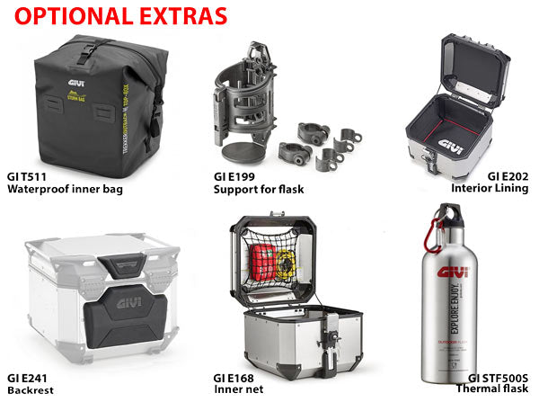 Note: Can be attached to any Givi Monokey plate, except plates equipped with the stop light kit connection.