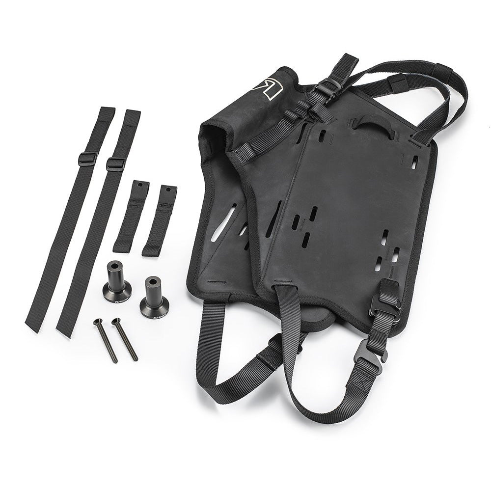 Designed to be a perfect fit on the DUCATI DESERT-X with a custom shape and specific fitting hardware, the KOSBA-I OS-BASE is an 'over the seat harness' for mounting OS-6, OS-12, or OS-18 ADVENTURE PACKS (sold separately) as soft panniers, with no need for metal frames. This system provides a super-tough, lightweight carrying solution, with no bodywork alterations needed. The fitting hardware gives the flexibility to mount a one, two, or three-pack set-up, depending on your type of ride. The set-length straps make mounting quick and easy, and the custom shape provides a tight, secure fit with plenty of distance from the exhaust. The New X-STRAPS provide extra pack stability for heavy loads or extreme off-road riding. It takes less than a minute to mount and just seconds to remove it.