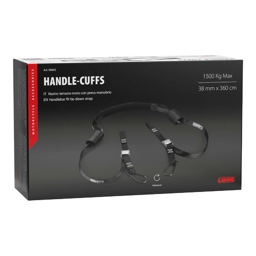 - Motorcycle handlebar fit tie-down strap complete with buckles for a quick adjustament of the tension.