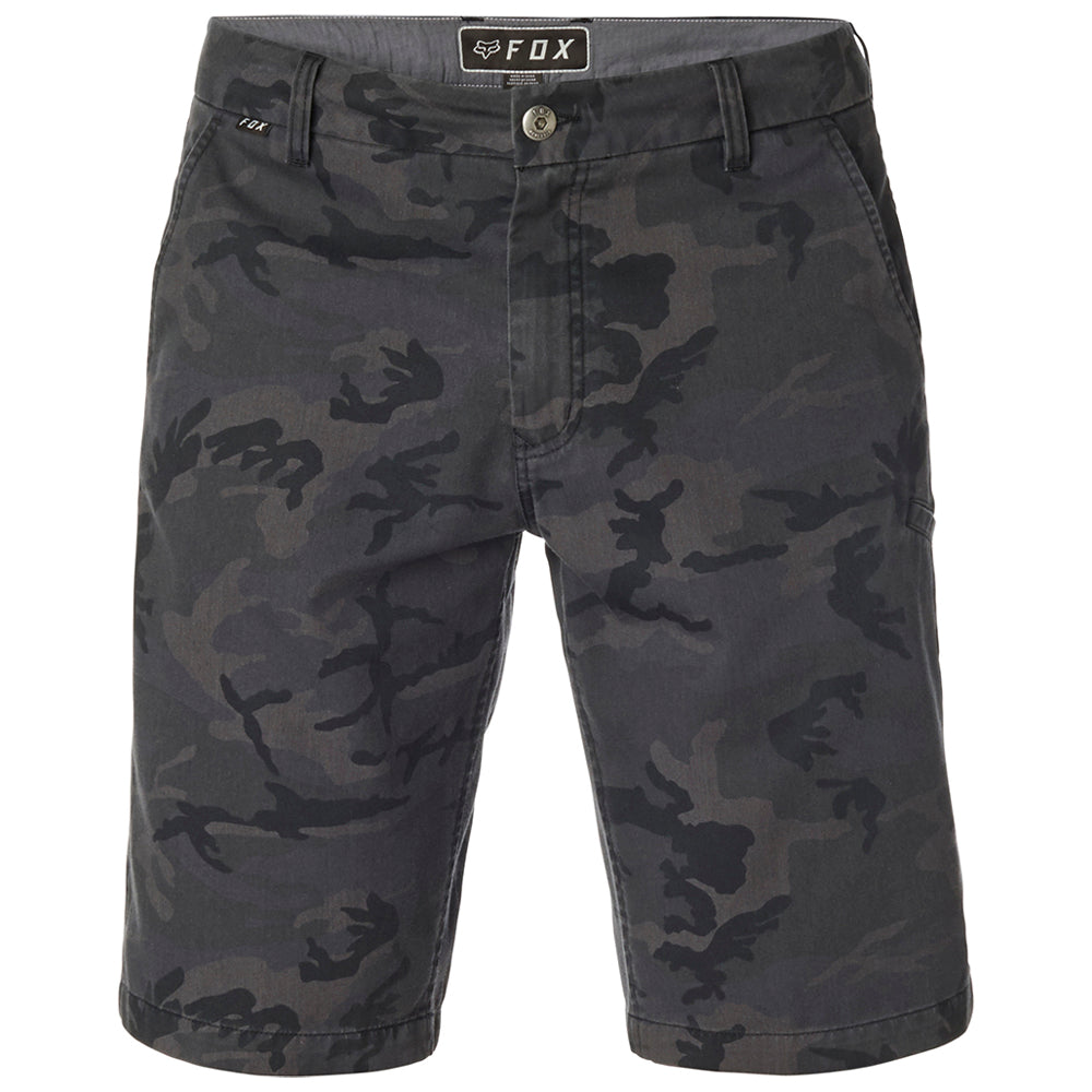 Linking comfort and style When simple style matters most, look no further than the Essex Camo short. This 22" men's short offers front, back, and side welt pockets, front zipper closure and a Fox branded label on the waistband.