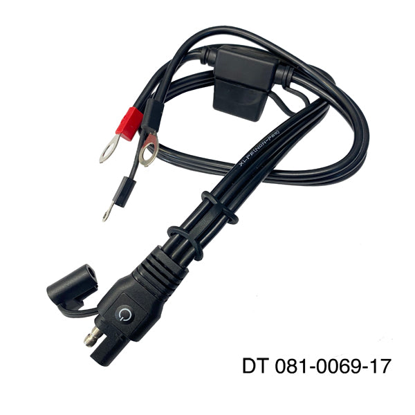 Note: If you don't already have a connection lead from a Battery Tender charger, you may also require a Fused Ring Terminal/Connector, DT 081-0069-6.
